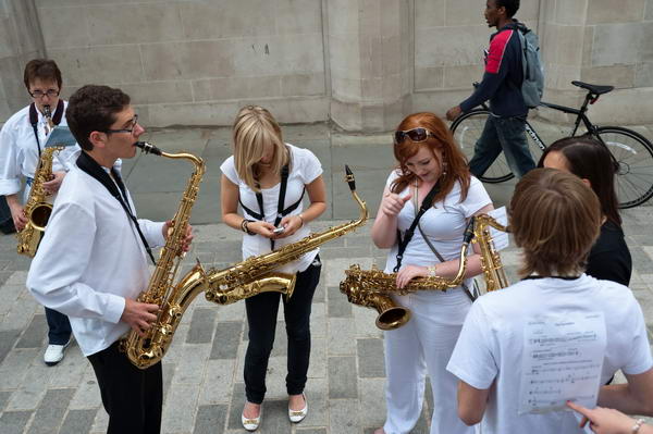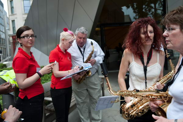 The Ludgate sax players started at the City of London Information Office at St Pauls - and there were a couple dancing