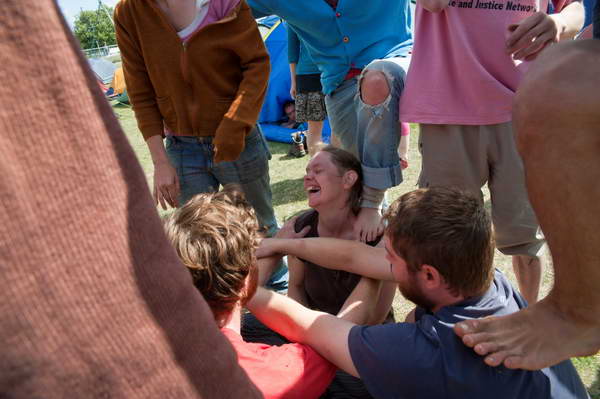 Discussing support for Vestas Blades with some of the Vestas workers taking part