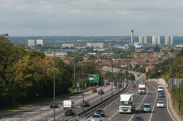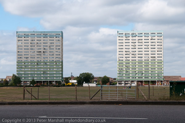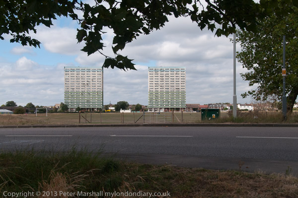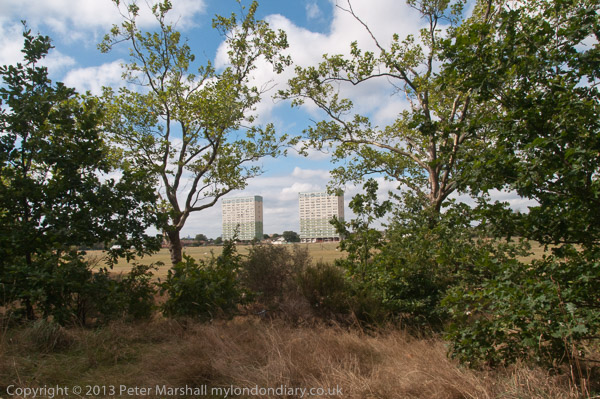 The blocks of the Montague Road Estate in Leytonstone rather dominate the view