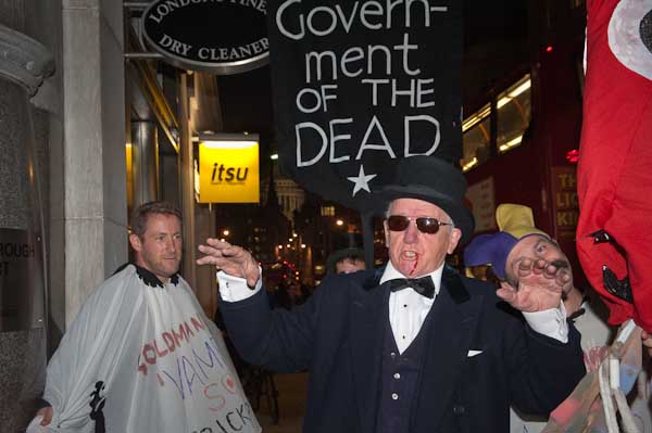 Among the zombies was Peter Tatchell, who along with many of the others there was intending to continue to Trafalgar Square and the silent candlelit 'Hate Crime Vigil' over the increasing number of homophobic attacks in London, and in particular the brutal attack there on September 25 that killed Ian Baynham.