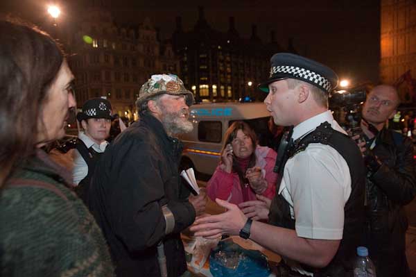 When we got there, the argument between Brian Haw and the office was in full swing