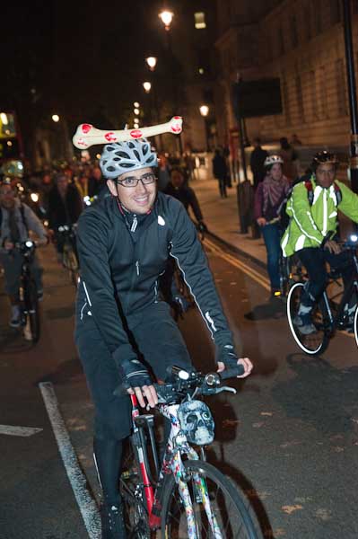 There were a very large number of cyclists and I saw no unifomed police riding with them at this point