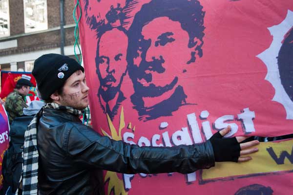 The march gathered in Malet St