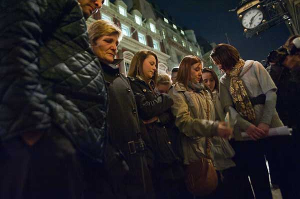 At the end of the vigil, the family members, attended by several TV crews and a bunch of photographers, walked in a solemn procession to the exact site where Ian Tomlinson died. There they laid flowers and stood in silence for a few moments before a short prayer was said by Rev Summers.