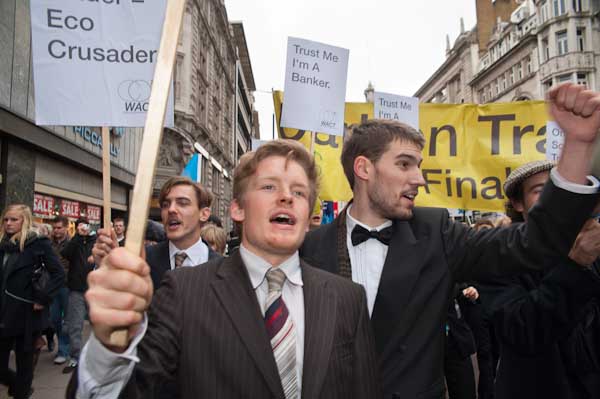 Me I'm a Banker - WACT in PiccadillyProtesters dressed as city traders made an ironic protest against carbon trading as the 'World Association of Carbon Traders' in the Stop Climate Chaos Coalition march through London on Saturday 5 December.