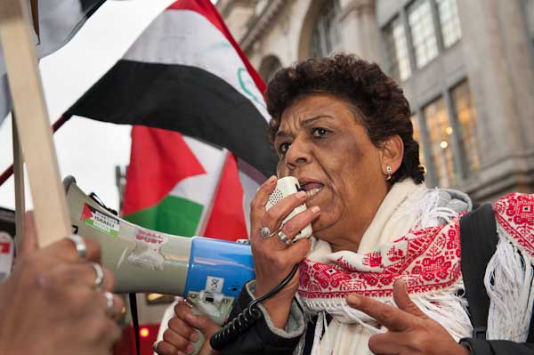 As well as speakers from the organising groups, there were politicians including Jeremy Corbyn MP, and Palestinians from Gaza. Speakers made clear the terrible conditions faced by those living in Gaza because of the Israeli siege; much needed food, medical supplies and building materials are blocked from entering the country. Volunteers from Britain in the Viva Palestina aid convoy of more than 100 vehicles were due to enter Gaza today, but they were prevented from entering Egypt on Christmas Eve; speakers called for the Egyptian government to let the convoy pass. At least two drivers from the previous aid convoy in July were at the demonstration.