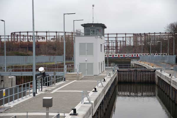 Opened last June, there still seems to be little or no traffic through the Prescott Channel, though of course the lock and its sluice gates are controlling the level and flow of water. When I was there the tide was low and so boats would have been unable to proceed through the lock in any case.