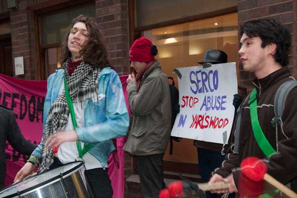Around 50 people demonstrated today (Friday 12 Feb, 2010) outside the Holborn offices of SERCO in Hand Court in support of the women detained in Yarl's Wood Immigration Removal Centre, run by SERCO, who are protesting at the inhumane treatment they receive there and whose hunger strike was broken up in a violent assault by SERCO officers on Tuesday.