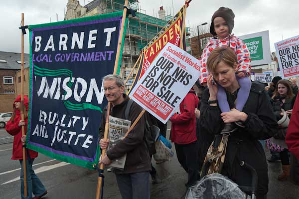 Several thousand people marched through north London on Saturday to a rally addressed by MPs, trade unionists, and health workers outside Whittington Hospital at Archway demanding the retention of accident and emergency services and the maternity unit at the hospital.