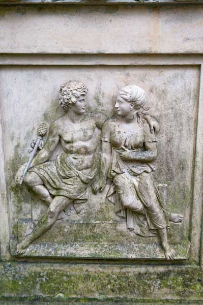 This is a copy of a 1st century AD vase which was discovered at the Villa Medici Rome around 1600 and, considerably restored, is now in the Uffizi gallery, Florence. The Kew copy is in Coade Stone, made around 1825 at Lambeth.