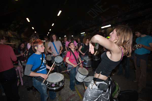 Rhythms of Resistance marched across Waterloo Bridge and into Leake St where I caught up with them