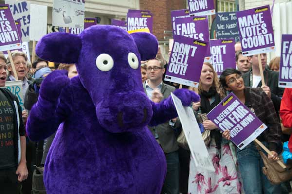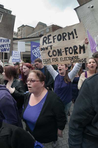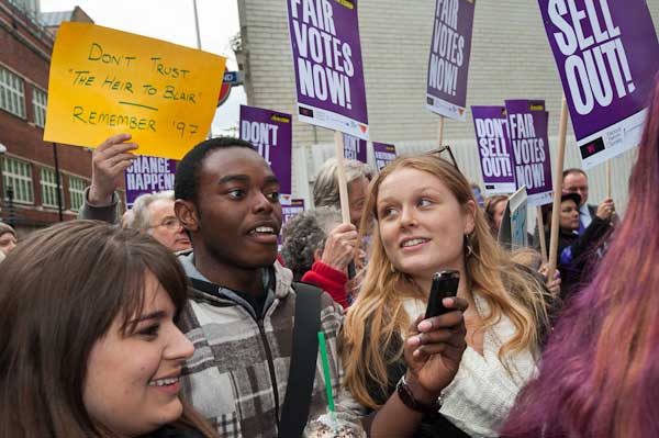 'Fair Votes Now' and 'Don't Sell Out!' were the two main message to the Lib Dems