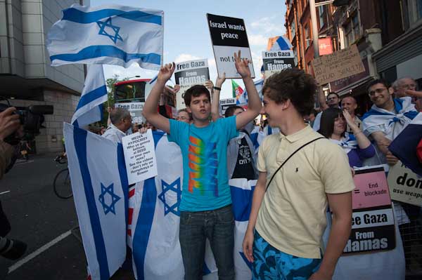 Among the counter demonstrators were Jewish supporters of the boycott of Israeli goods