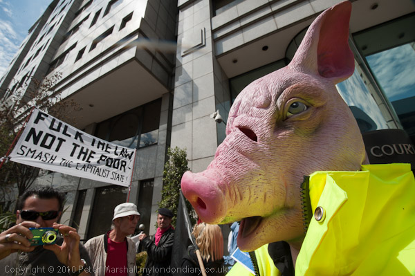 Anti-capitalist protestors outside the DPP's offices in Rose Court, Southwark Bridge Road