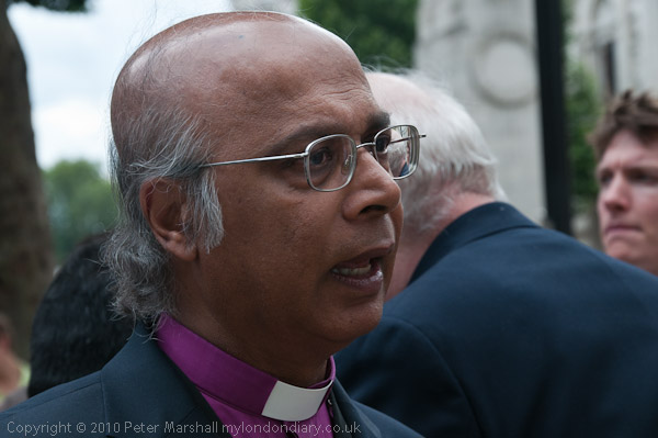 From Knightsbridge the protesters marched to Downing Street, going post Piccadilly Circus and Trafalgar Square, carrying a large and very heavy wooden cross and stopping at three strategic points for prayers, including the Lords Prayer. Opposite Downing Street where roughly the same number of people were waiting to greet the marchers there was some fine singing from Diana Orfuri or the Christina Party and Holy Nation Church and an address by former Bishop of Rochester, Michael Nazir Ali, who then went with a small group to deliver the petition to Downing St.