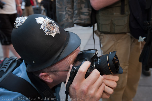 ![]() Holding up the 'I'm a photographer not a terrorist!' card at New Scotland Yard ![]() ![]() ![]() Posing for the man from Reuters ![]() Very hard to get more than one flash firing in a picture ![]() |