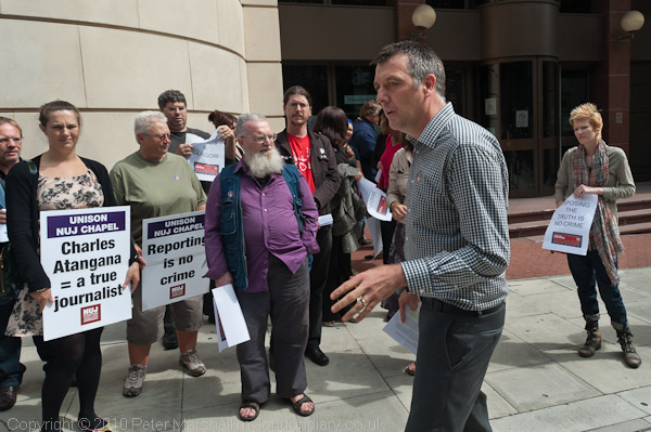 NUJ General Secretary Jeremy Dear decides he doesn't need a megaphone to talk to the picket