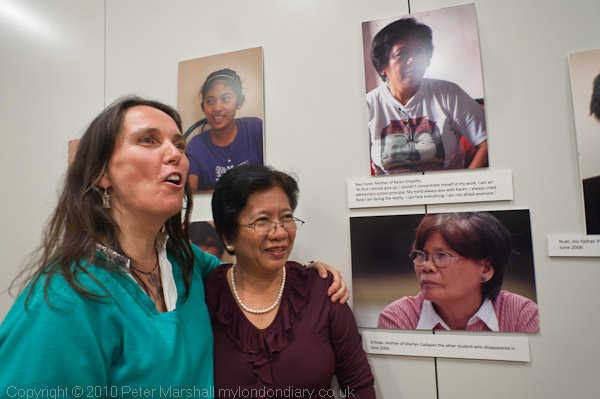 One of the other speakers from the Phillipines was Karen Empeno's mother, a primary school teacher. Karen had volunteered to help a farmer's organisation. In 2006 she was grabbed by men in military uniform and thrown into a jeep, along with a farmer, Manuel Merino, who had tried to help her. Two days later her mother heard about her disappearance; she searched the hospitals, went to the radio and TV studios for interviews and filed a habeas corpus at the Supreme Court, but could get no information anywhere about her daughter. Connie Empeno said "I am not an activist" but she "became a spokeperson for my missing daughter and other victims of dissaperances...The only hope I have left is that she is still alive."