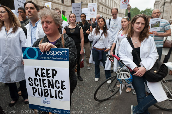 The protest, which filled much of King Charles St, off Whitehall was organised by 'Science is Vital' coalition, an organisation only set up a few weeks ago by biochemist Dr Jenny Rohn of University College London, who soon attracted an organising committee including otheSr scientists and a wide range of science-related organisations.
