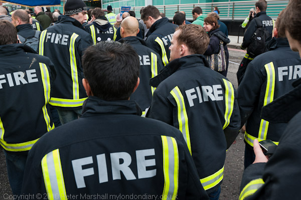 Earlier there had been an argument with the police who had objected to the rally occupying one of the two southbound lanes of Whitehall, but was allowed to go ahead officer in charge after those present had refused to move. In previous years the police have usually seemed anxious to avoid confrontation, although in 2008 they insisted on searching all the bouquets before allowing them to be laid on the gates of Downing St.