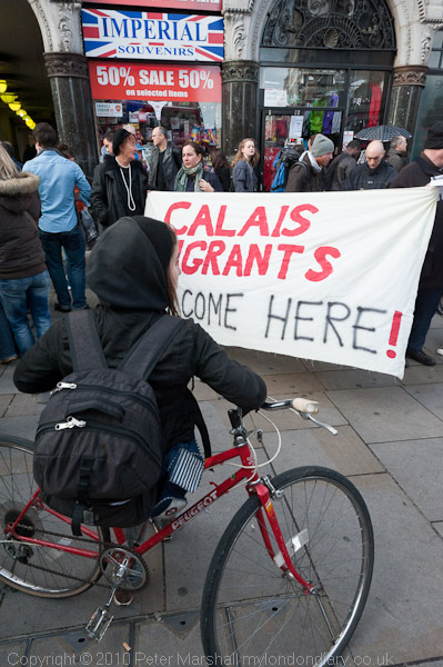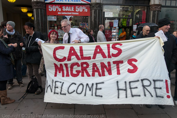 Calais Migrants Welcome Here said one of the banners