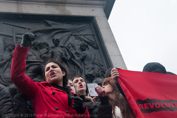 The marchers have arrived back in Trafalgar Square, joining with the others still there