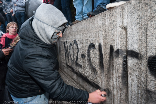 ![]() ![]() ![]() Spraying slogans on the plinth in Trafalgar Square ![]() ![]() ![]() ![]() |