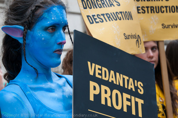 Jul: Bright blue Avatar aliens protest against Vendanta destroying the Dongria in Orissa