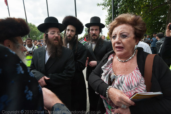 Sep: A woman argues with the Neterei Karta Jews before the march starts at Marble Arch