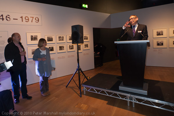 Photographers Barry Lewis and Sally Fear look on as Museum Director Jack Lohman introduces the show