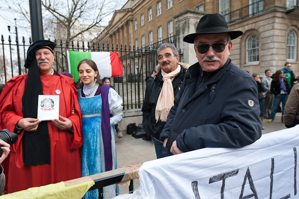 Around 500 Libyans supporting the revolution there came to Downing St this lunchtime to express their thanks to David Cameron for the air strikes against Gaddaffi's forces and his leadership in establishing a 'no-fly'zone.