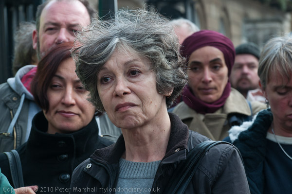 We were also reminded of the particular threat posed by the cuts to the disabled by Eleanor Lisney from DPAC (Disabled People Against Cuts) who spoke from her wheelchair, and said that although many disabled would join the protest on Saturday, others whose disability prevented them from being physically present would also be taking part from where they could be, making their protest at locations on a map which would be on the web.