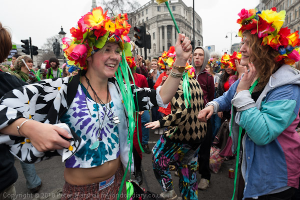 Although later in the day Trafalgar Square was the site of bitter fighting as police made a largely unprovoked attack on a partying crowd, earlier in the day everything was much more peaceful. As the half million or so TUC marchers made there way along the southern edge tourists wandered as normal and there was some extra entertainment for them.