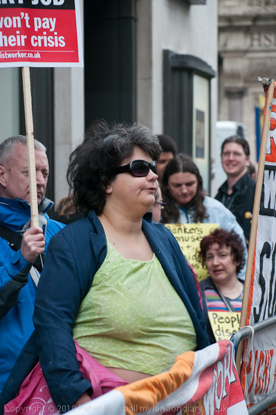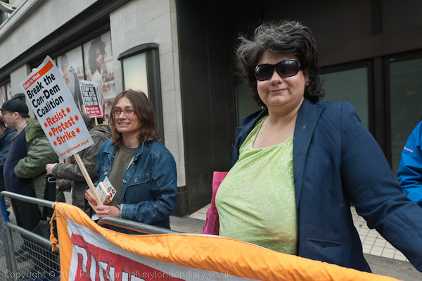 Several of the activists were in wheelchairs, and 'Disabled People Against Cuts' was one of the groups orqanising the event