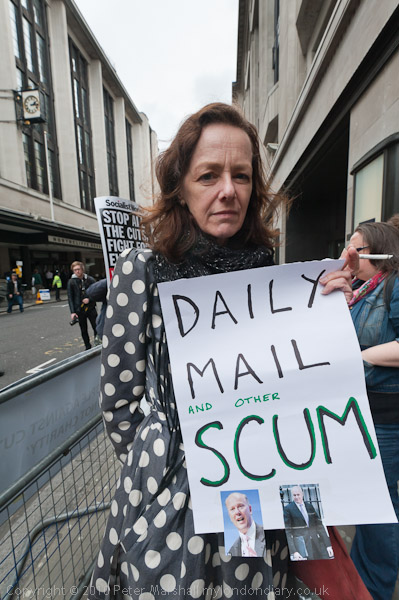 'Daily Mail and other Scum' and 'Real Royal Scroungers - Not Us' placards