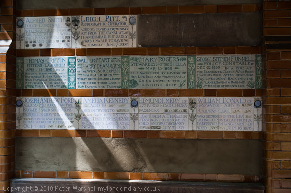 The Watts memorial plaques in Postmans Park - with an addition for 2007