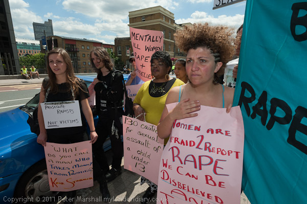 Following on from London's Slutwalk, these groups acting together with some of the Slutwalk organisers as 'Slut Means Speak Up' set up this protest at the CPS offices on Southwark Bridge calling for action over miscarriages of justice against rape survivors. There is considerable and compelling evidence that police and prosecutors are too often failing to bring rapists to justice and also disturbing cases where rape victims have been jailed for so-called false allegations.