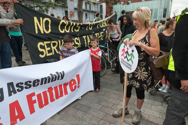People gathered in Gillet Square opposite Ridley Rd market for the march