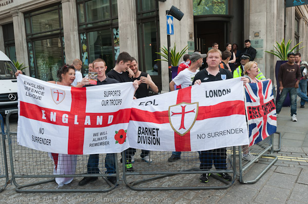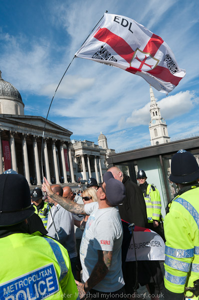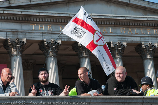 Some of the EDL made their way to protest on the North Terrace of Trafalgar Square but were soon surrounded