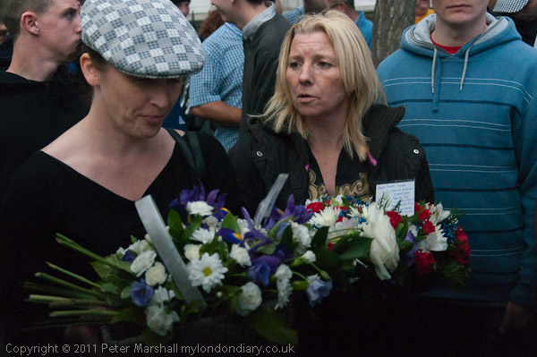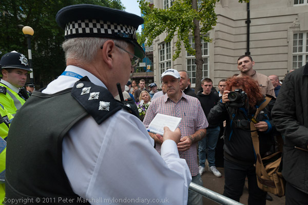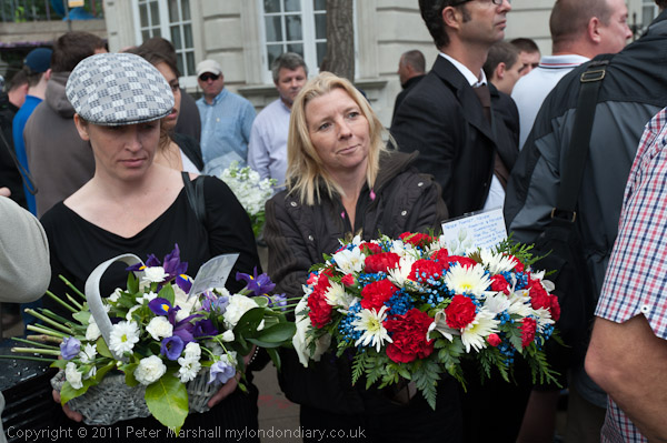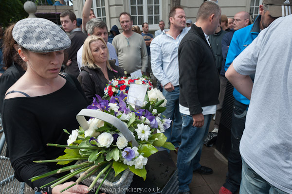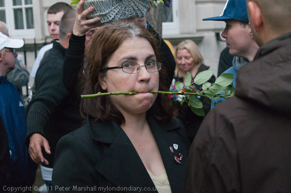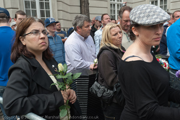The EDL were first to attive, and came to the northwest corner of the square, some carrying wreaths & flowers