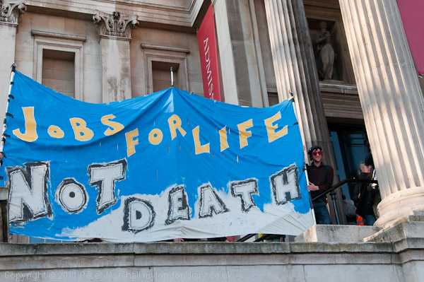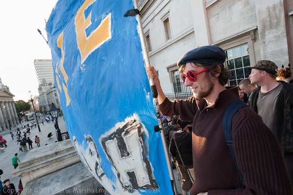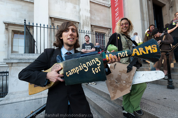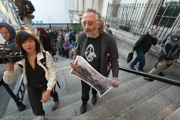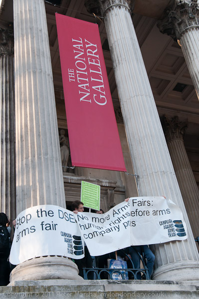 Ignoring the protests of the National Gallery security staff, some of the protesters rushed up the steps with their banners