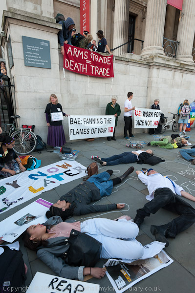 Police argued with the protesters to get them down from the steps and those on the terrace staged a die-in