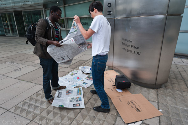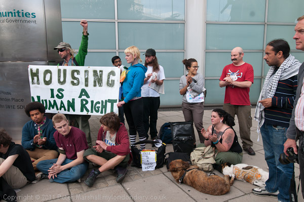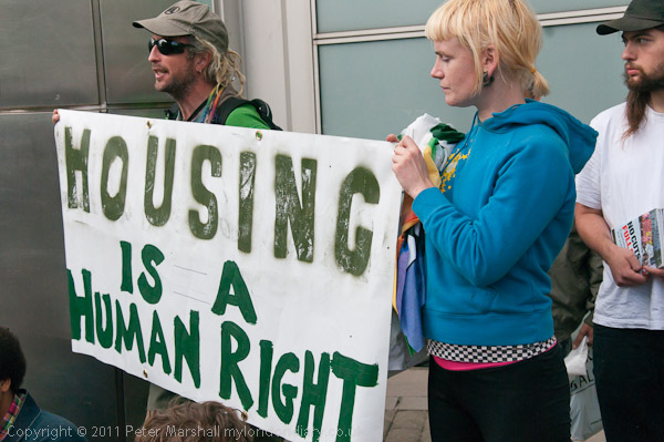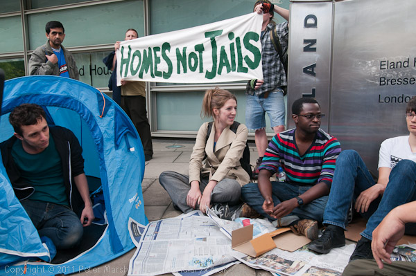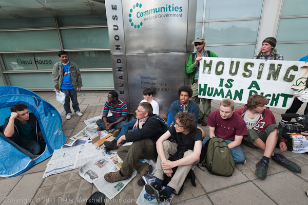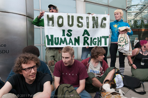 ![]() Protesters arrive and begin to set up a 'camp' with a few sheets of newspaper, some card ![]() and one tent ![]() ![]() More arrive and make themselves at home ![]() 'Housing Is A Human Right' ![]() ![]() |