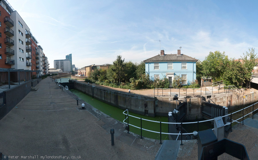Mostly my panoramas are horizontal, but sometimes as here on the corner of Warton Rd I needed two vertical 16mm frames to get everthing in
