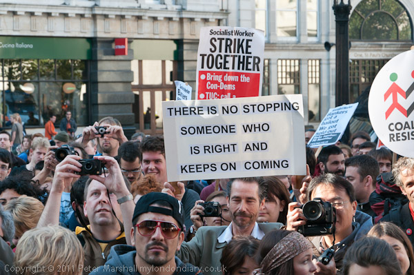 Meanwhile, the Occupy London (OccupyLSX) protesters were gathering on the steps of St Paul's Cathedral