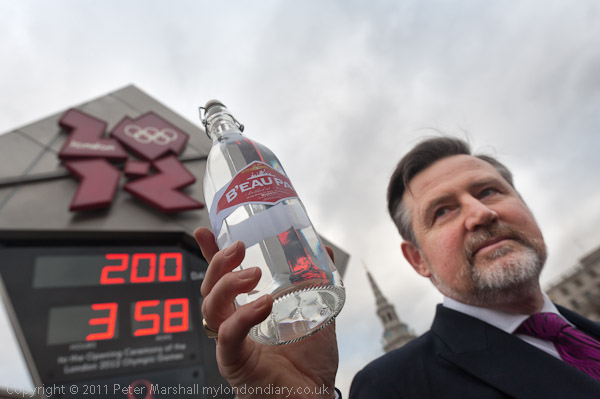 Also speaking in front of the Olympic clock in Trafalgar Square was Barry Gardiner, Labour MP for Brent North and Chair of Labour Friends of India. He held up a bottle of water from Bhopal, bottled for the occasion as a mineral water, 'B'eau Pal' and also invited Lord Coe and London Mayor Boris Johnson to drink some of it, and invited them to go to Bhopal and see the ongoing contamination there with their own eyes. He called for the London Olympic organisers (LOCOG) to drop Dow Chemical Company as a sponsor.