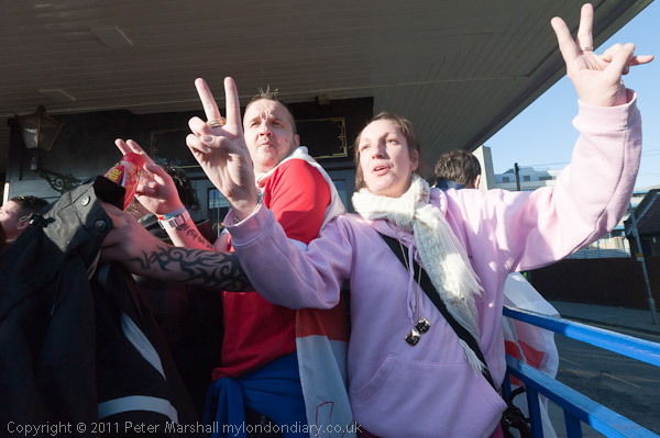 slightly smaller group of EDL supporters made its way back towards the station,
