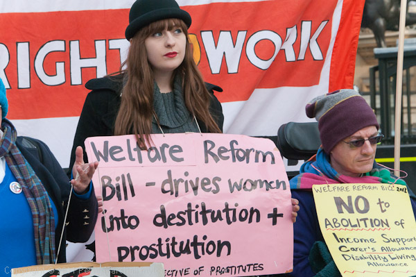 The organisers of today's rally say the the Government through this Bill and other measures is going back to Dickensian days, with the caps on housing benefit leading to many families in central London being evicted, the sick and disabled forced to return to work while incapable, and single mothers when their children still need them - as soon as they are one. Those with the greatest need in our society will have their benefits slashed.