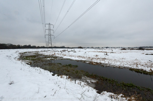 ![]() Church Street has some of the older remaining buildings in Staines ![]() The Wyradisbury (or Wraysbury) River, one of the streams of the Colne, runs between a housing development and a shopping centre ![]() The aqueduct which takes water from the River Thames at Wraysbury to the Staines Reservoirs ![]() Commoners have grazing rights on the Moor. Many of the animals have been taken off because of the weather ![]() The River Colne on Staines Moor - and pylons. Usually you can see (and hear) planes taking off from Heathrow. ![]() ![]() In wet weather parts of the moor are flooded or boggy and you need to keep to the slightly raise paths. But no problems today |