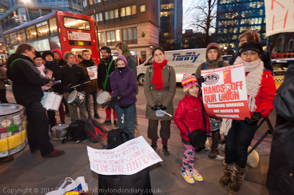 The cleaners are now in a branch of the IWW. At the protest were some sacked from NTT Communications